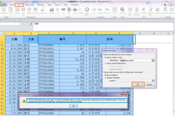 如下圖,在插入—-數據透視表時,EXCEL提示“數據透視表字段名無效。在創建透視表時,必須使用組合為帶有標志列列表的數據”。