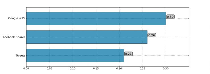 2、社會化表現,尤其是Google+和Facebook分享相關性非常高;